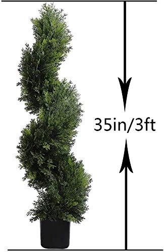 - 【Specification】: Artificial plant spiral cypress tree 3 feet high(35inch), The pot:4.65H*4.9W. This is a great gift, beautifully packaged, perfect for giving friends. Because the display screen is different, the color of the product may have some differences, please kindly note here.