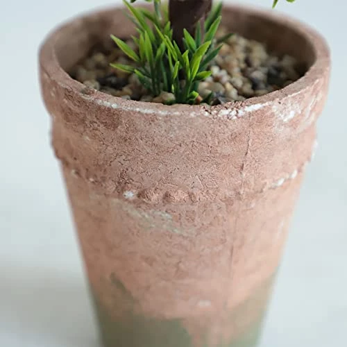 - Topiary small potted plant in moss pattern stone pot height 13 inchs and in the trunk bottom there have small gravel cover looking more natural and realistic.