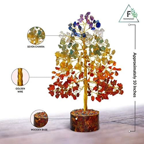 - Specification of bonsai tree: Seven chakra money tree has small natural gemstone beads of amethyst, red jasper, carnelian, clear quartz, lapis lazuli, yellow aventurine, green aventurine crystals and golden wire with the approximate size 10 Inch which is good for home decor, office decor, room decor, gifting purpose etc. The crystal décor tree is crafted by the skilled artisans in INDIA who gave a beautiful look to the feng shui tree.