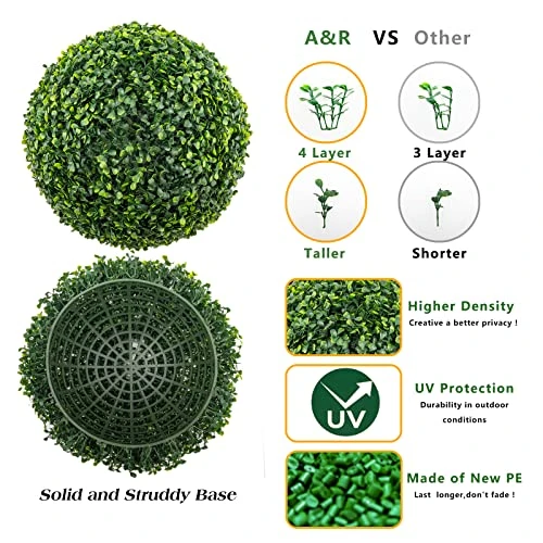 - Outdoor boxwood balls have no pungent smell, a sturdy base, and High-density leaves make it a more realistic live plant without the work of caring for a live plant and more long-lasting than it