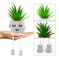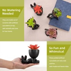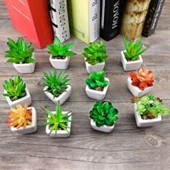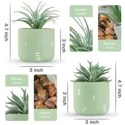 Creative Succulent Plants Potted, Mini Artificial Decorative Potted Plants With Grey Pots – Set Of 3