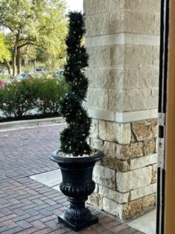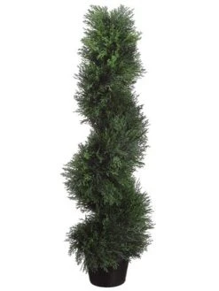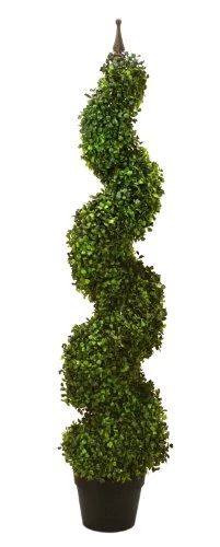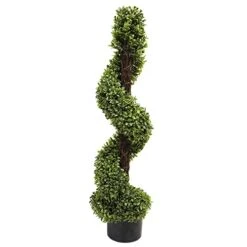 Two Pre-Potted 47″ Artificial Outdoor Indoor Spiral Boxwood Artificial Topiary Trees. In Plastic Pot