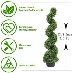 Two 43.3 Inch/3.6 Ft Artificial Spiral Topiary Trees Boxwood Spiral Trees Artificial Topiaries Trees