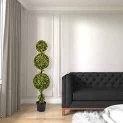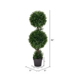 Velener Mini Plastic Artificial Pine Ball Topiary Plant With Pots For Home Decor (Green Clover)