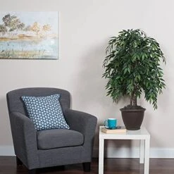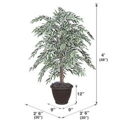 Vickerman 4′ Artificial Mini Ficus Bush, Gray Plastic Container.