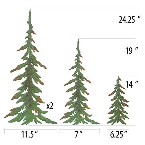 - COMPLETE SET: This pine tree metal collection come in of 4 with hanging holes that are within each item, giving the exact balance point. In package you will find two big trees, one medium and a smaller one. Its sturdy, yet lightweight design is intended for those who want pretty changes to their house that can be stored away in a garage or closet in case of no more need.