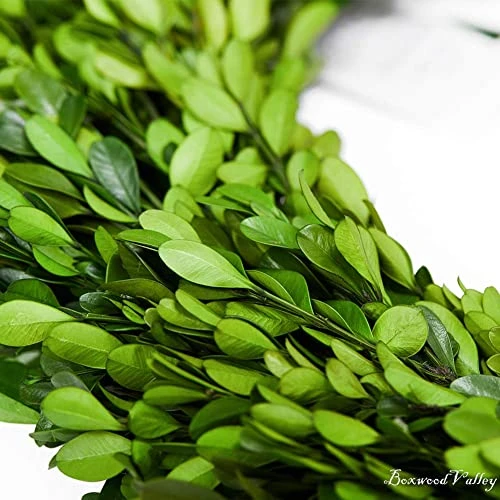 - Boxwood wreath is surrounded by fresh leaves, simple elegant and comfortable color, vivid natural shape, and bring romance into the atmosphere.