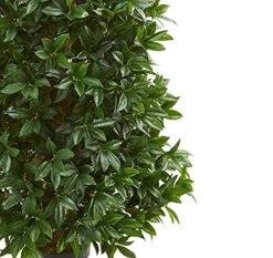 - Faux triple ball topiary ; Realistic looking boxwood foliage ; Perfect for compact spaces ; Housed in a white planter with river rocks ; Suitable for outdoor use ; Artificial trees are manufactured using synthetic materials and are well designed and constructed to be life-like in appearance. No maintenance needed for this artificial tree; wipe clean with a soft dry cloth ; Item will need to be re-shaped when removed from the box; this artificial tree can easily bend for reshaping purposes – please separate and fluff the branches and leaves to achieve the desired fullness. Measurements are calculated from the furthest outstretched dimension