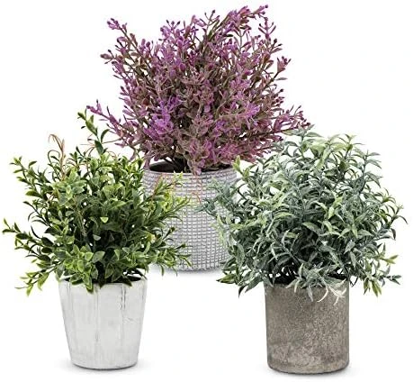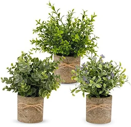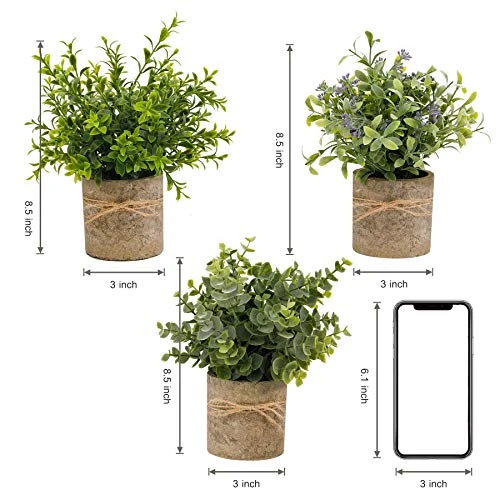 - 【The Set Consists of 3 Artificial Plant】3 Different artificial plants in small gray pots. Included: Eucalyptus, Rosemary, and Gypsophila. Average Fake Plant Size 3” – 3.25” H X 8.5” – 8.75” W.