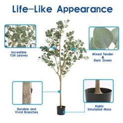 DIIGER Artificial Tree Plant Eucalyptus Tree 6FT Tall, Modern Large Fake Plant Decor In Pot For Indoor Outdoor,Home Office Perfect Housewares Gift Decoration, 71 In Eucalyptus Tree