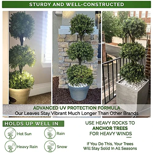 - ⭐ MAINTENANCE AND MESS FREE: ⭐ Our outdoor artificial plants are always neat and clean! No watering, no trimming, no fertilizing, NO MESS! No plants that get sick or die, no costly replacements, and no wasted time. Give your space the high end look of a live topiary plant without the work of caring for a live tri ball topiary! Perfect front door topiary trees or topiaries for front porch decor / topiaries for front entrance. We truly make the best artificial boxwood balls for pots. .