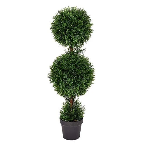 Vickerman 3′ Artificial Double Ball Green Cedar Topiary. Introducing Vickerman’s 3-foot Tall Faux Cedar Double Ball Topiary – the perfect addition to your front porch or any outdoor space. This stunning artificial plant features two realistic cedar topiary balls that will elevate the ambiance of your decor. Made with high-quality materials, this artificial topiary is UV resistant and requires no maintenance, making it the ideal choice for those who want the look of a real tree without the need for upkeep. Simply place it in a decorative pot of your choice and enjoy the beauty of this faux topiary. This faux tree is perfect for adding a touch of elegance and charm to your front porch or as a welcoming decoration by your front door.