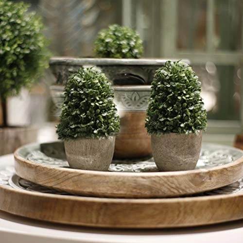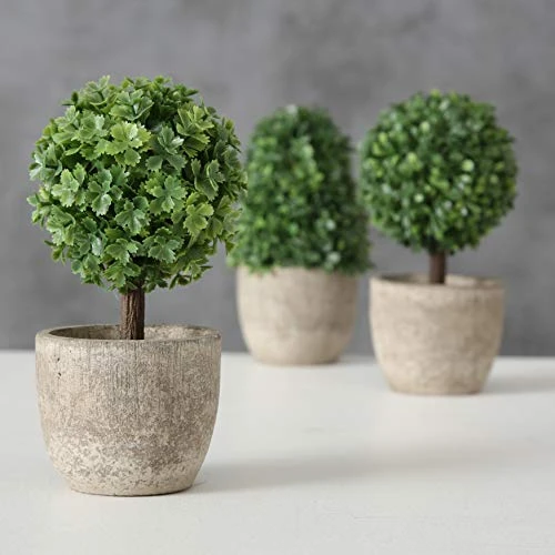 - Quality production. Each pack contains 2 ball trees and 1 cone. These gorgeous topiary mini-trees are made using the finest grade plastic materials and the most advanced manufacturing techniques to ensure botanical accuracy. Each leave on this fine reproduction mini-tree is inspired by nature with intricate details that mimic the real thing.
